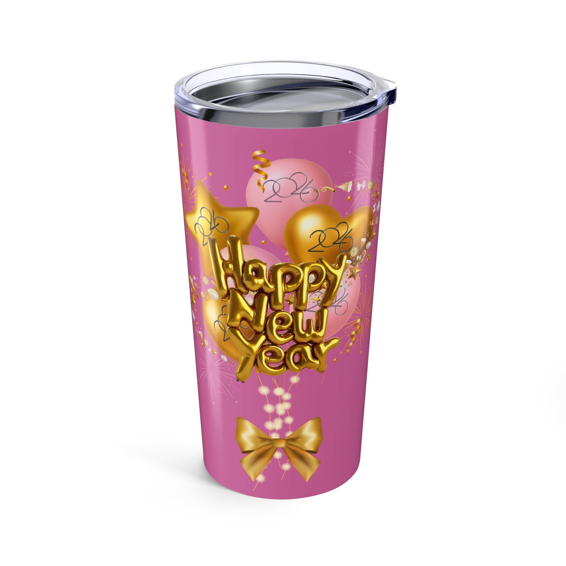 Celebrate the turn of the year with a little sparkle. This 20oz stainless steel tumbler wraps bubbly pink stars and hearts in a glossy, gold-accented finish that catches light like confetti. It feels cheerful in your hands and keeps your coffee warm through early-morning toasts, or your iced drink cold during afternoon errands. Lightweight but sturdy, it slips into a tote or cup holder and becomes the kind of travel companion you reach for when you want a touch of joy. For people who plan cozy gatherings, ring in traditions, or simply like glittering details in their everyday, this tumbler adds a bright, celebratory note to morning routines, countdowns, and casual meet-ups.