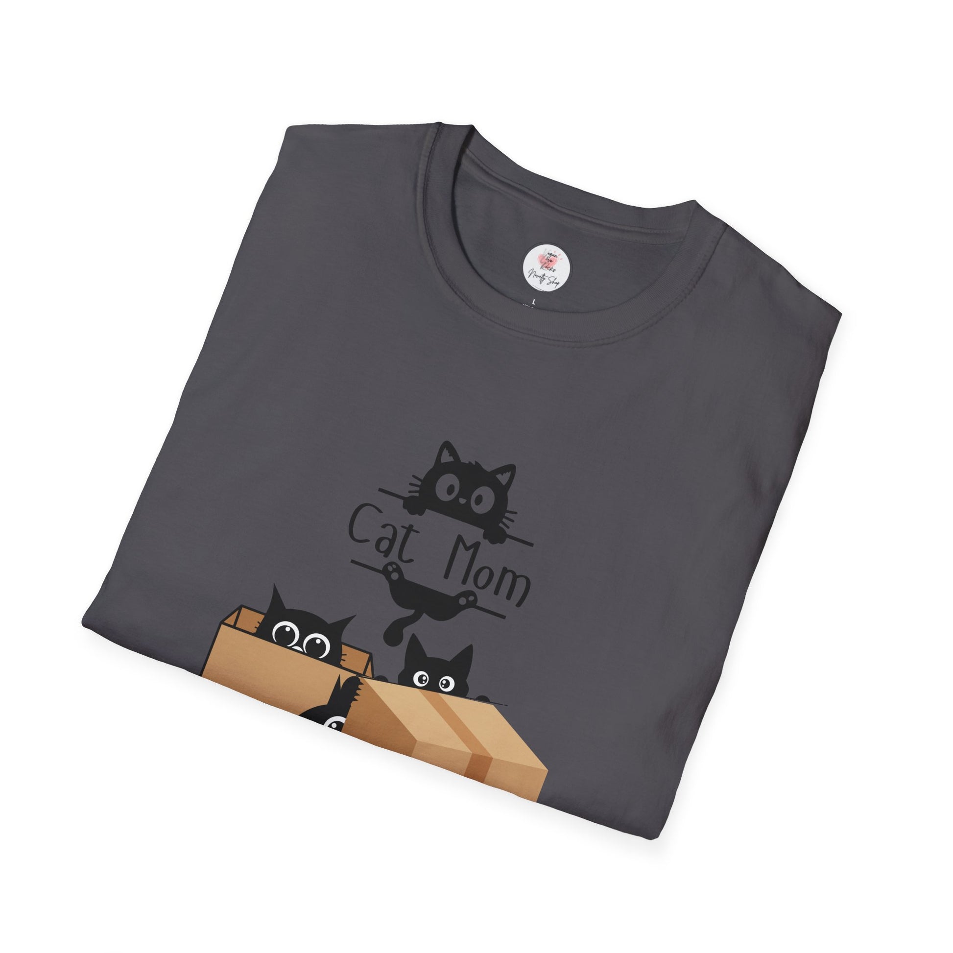Soft, light, and sprinkled with quiet humor — this tee slips into your day like a friendly paw. The design shows curious black kitties peeking from and into cardboard boxes with the simple heading “Cat Mom,” a small celebration of the tiny rituals that make life with cats so alive: the rustle of paper, the vanishing act into a sunlit box, the slow blink of approval. Wear it on lazy mornings while pouring coffee, at casual meetups with fellow feline lovers, or on those sofa-and-slapdash-toy afternoons when your cat decides the box is more fashionable than the toy. The shirt feels breezy on, holds its shape, and keeps the design crisp — just enough charm to spark a smile every time you catch a glimpse of it in the mirror.
