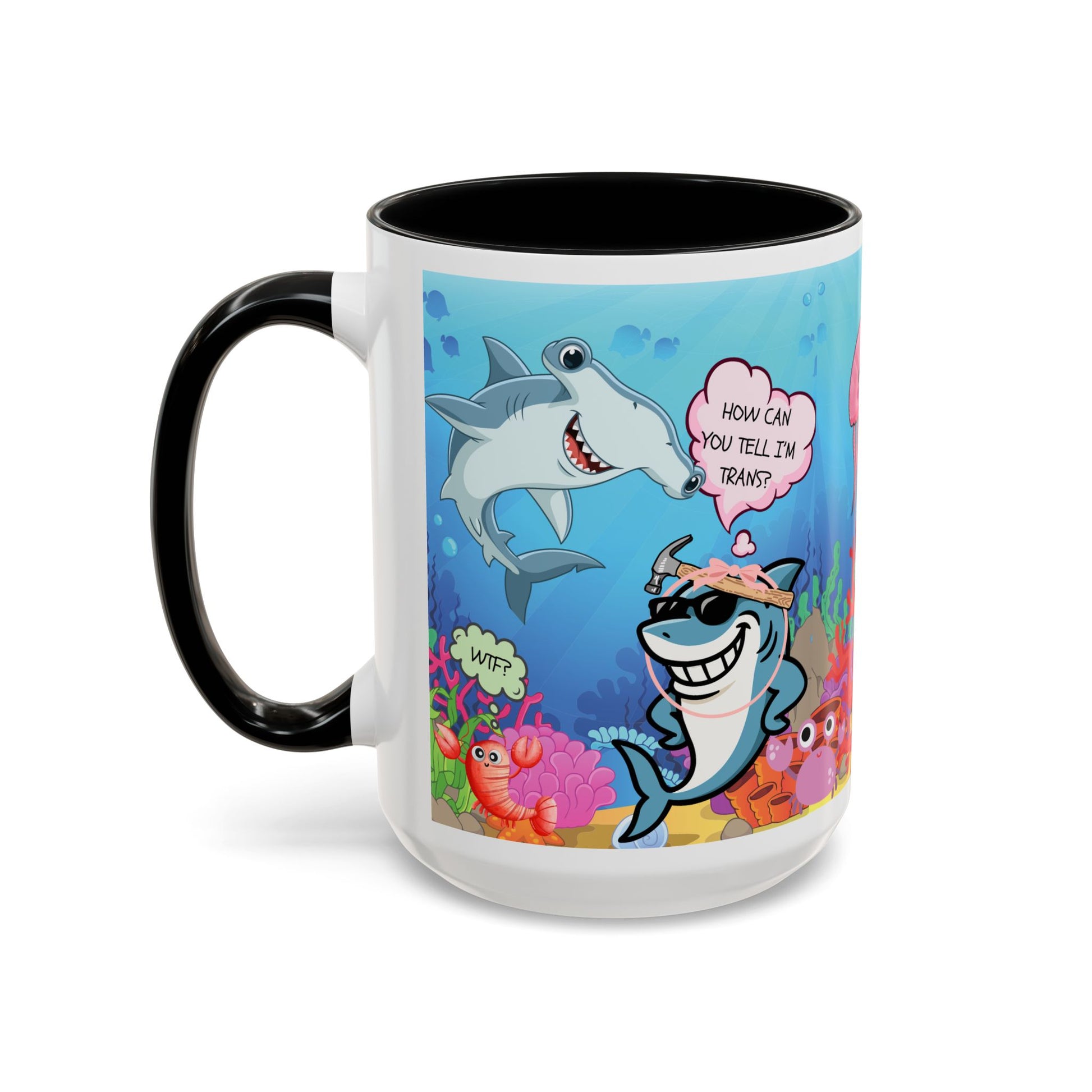 Ceramic Coffee Mug — Funny Tropical Sharks "How Can You Tell I’m Trans?"