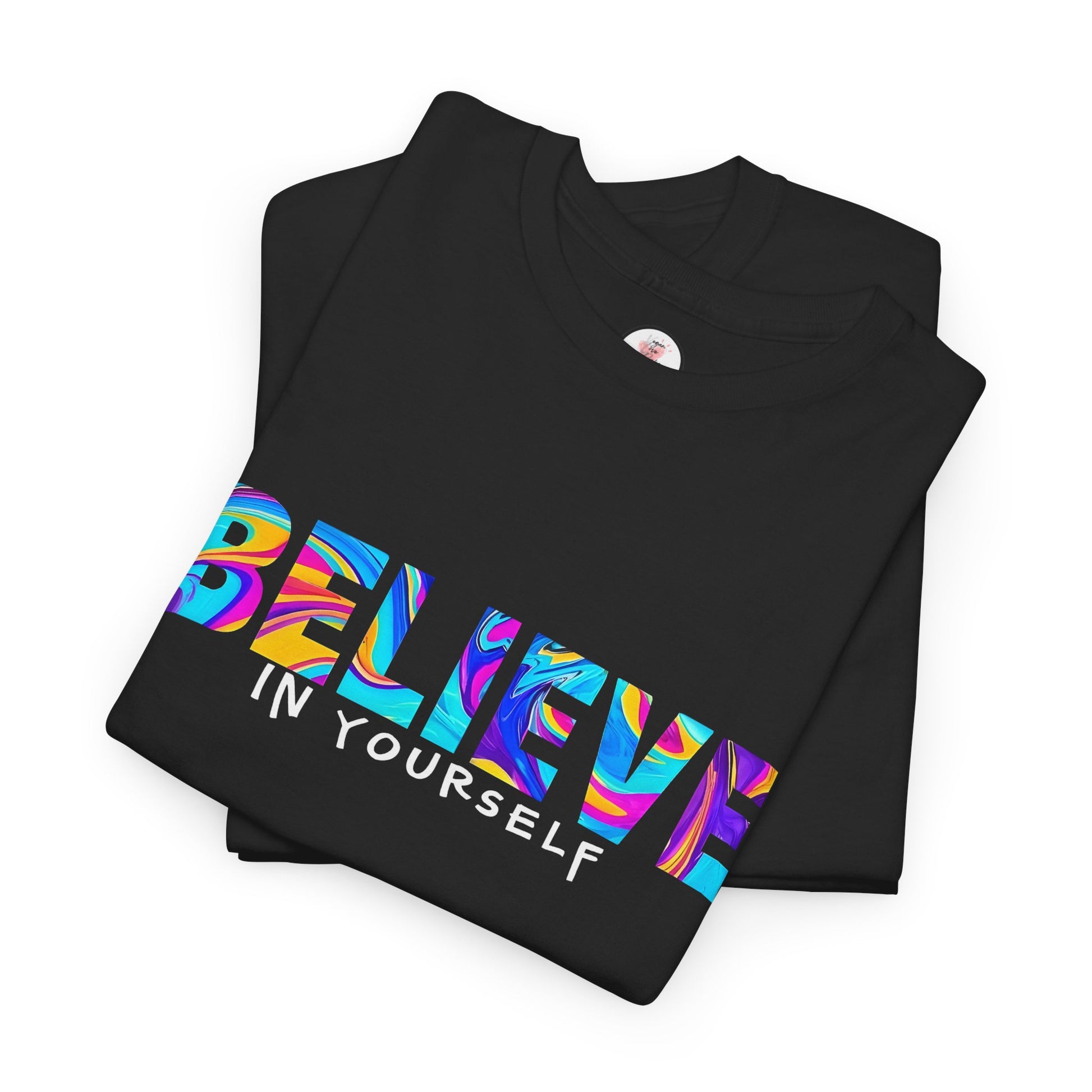 Colorful 'Believe in Yourself' Motivational Tee is perfect for those seeking inspiration and positivity. This tee is ideal for adults looking for a comfortable and versatile shirt to wear for any occasion. Great for gifting during birthdays, holidays, or as a personal reminder to stay confident.