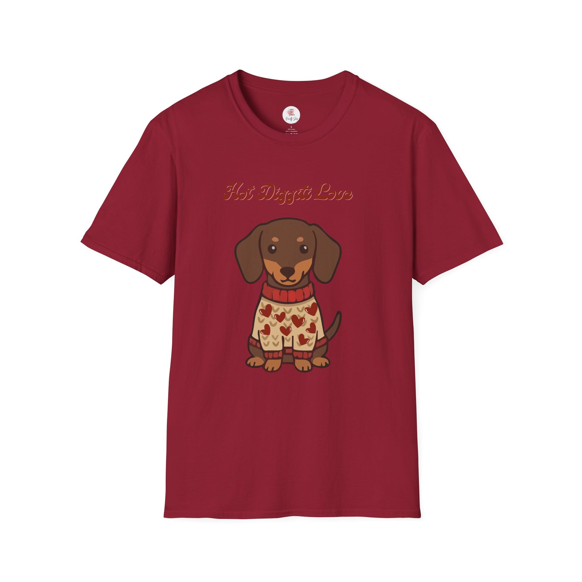 Dachshund Sweater T-Shirt - "Hot Diggiti Love" Cute Wiener Dog Graphic Tee