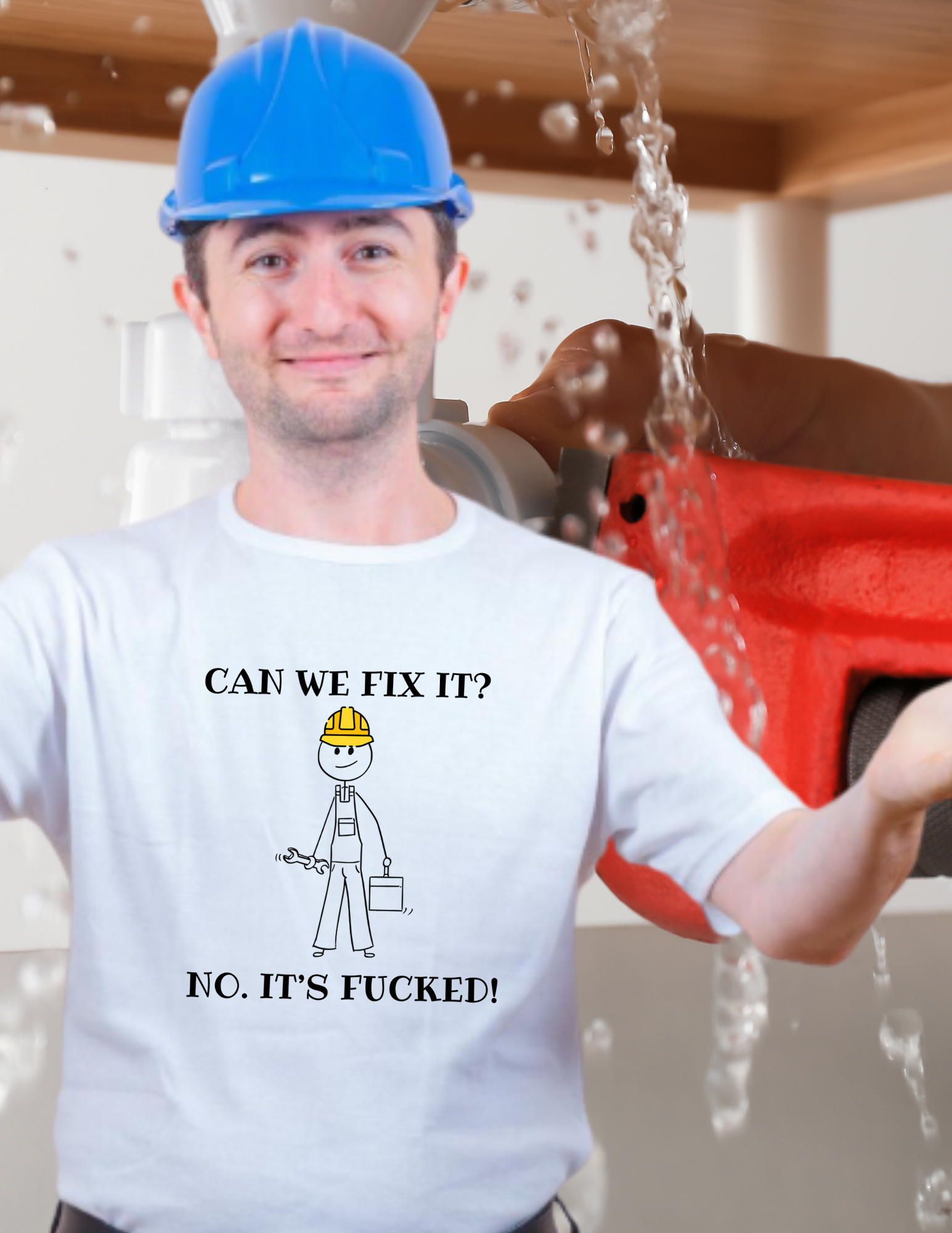 Funny Construction T-Shirt — "Can We Fix It? No, It's Fucked!" Worker Tee