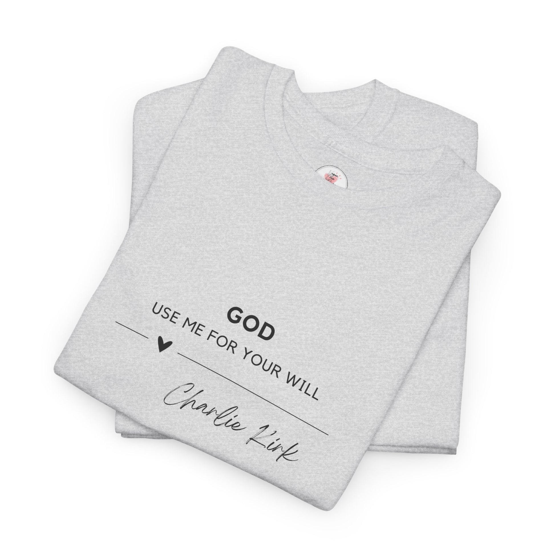 This "GOD Use Me For Your Will" Spiritual T-Shirt exudes a sense of spirituality and faith. Perfect for those looking to express their beliefs stylishly. Ideal for adults who want to wear a message of faith and devotion. Relevant for religious holidays, spiritual observances, and everyday wear. In loving memory of Charlie Kirk