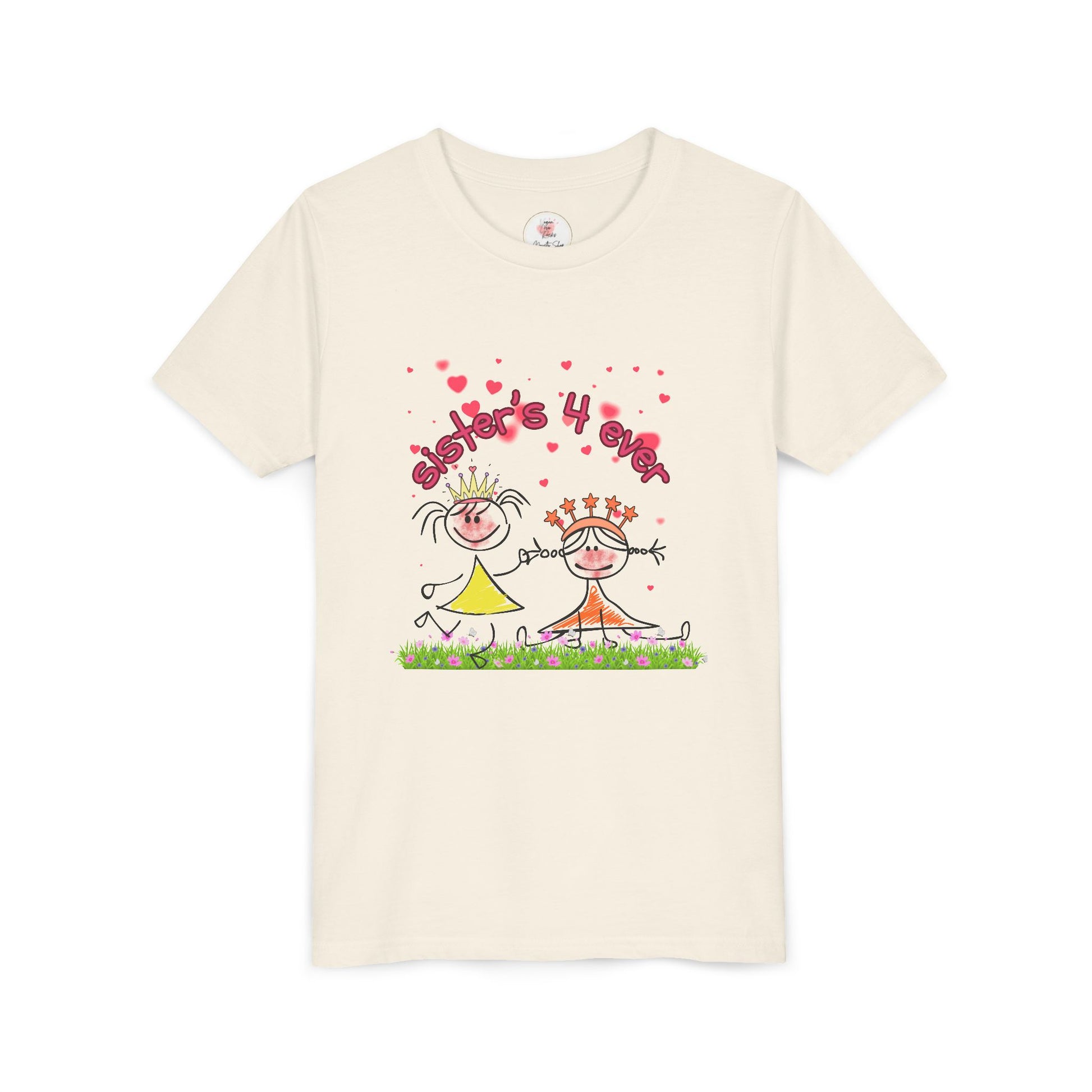 Sisters 4 Ever Youth Tee — Cute Hand-Drawn Sisterhood Kids Shirt