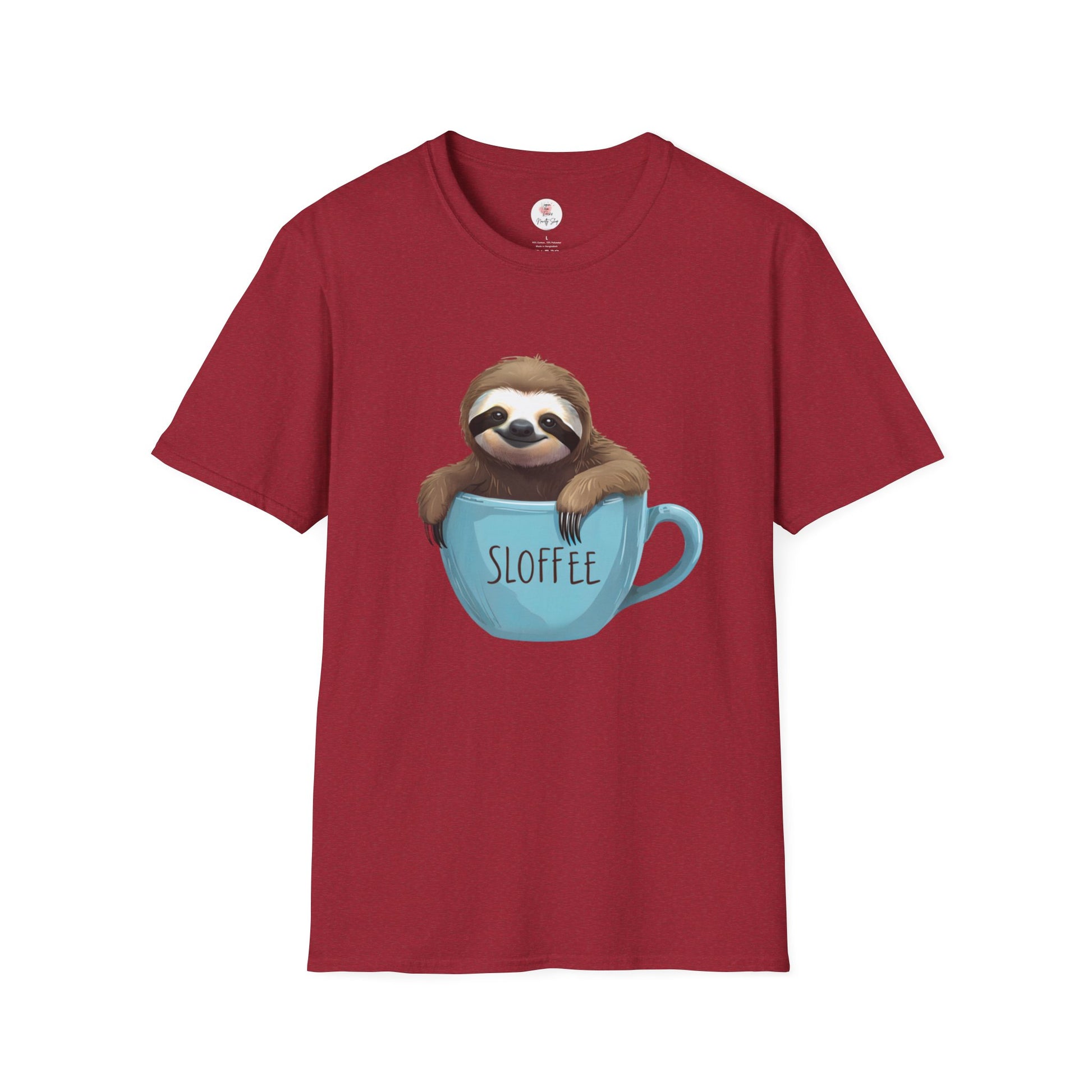 A lightweight, cozy tee that brings a smile with every wear. The design features an adorable sloth curled up inside an oversized coffee cup, with the word "Sloffee" — a gentle reminder to slow down and savor small comforts. This shirt sits comfortably in a casual wardrobe and pairs well with jeans, joggers, or a favorite cardigan — the kind of shirt you reach for when you want to move through the day a little calmer.