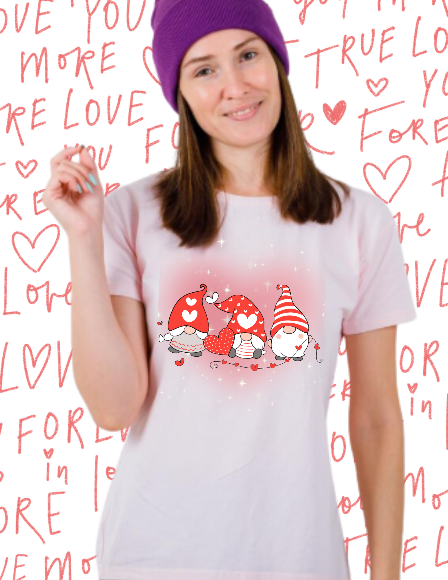Valentine Gnome Trio T-Shirt — Cute Hearts & Cozy Valentine Gnomes Tee