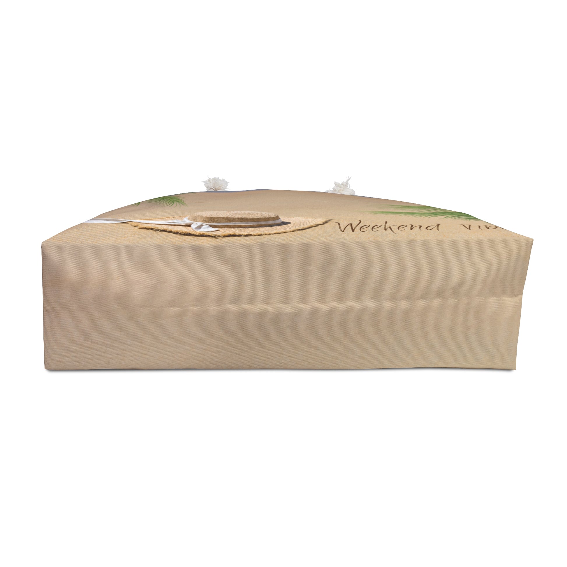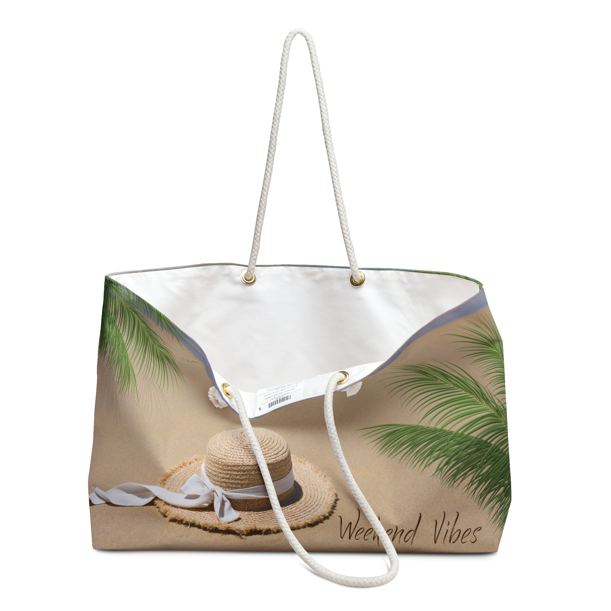 Embrace the weekend vibes with this stylish beach vacation weekender bag. Made from 100% spun polyester, this bag features rope handles, a cream sheeting interior lining, and a t-bottom design. Perfect for those who love weekend getaways and beach trips.