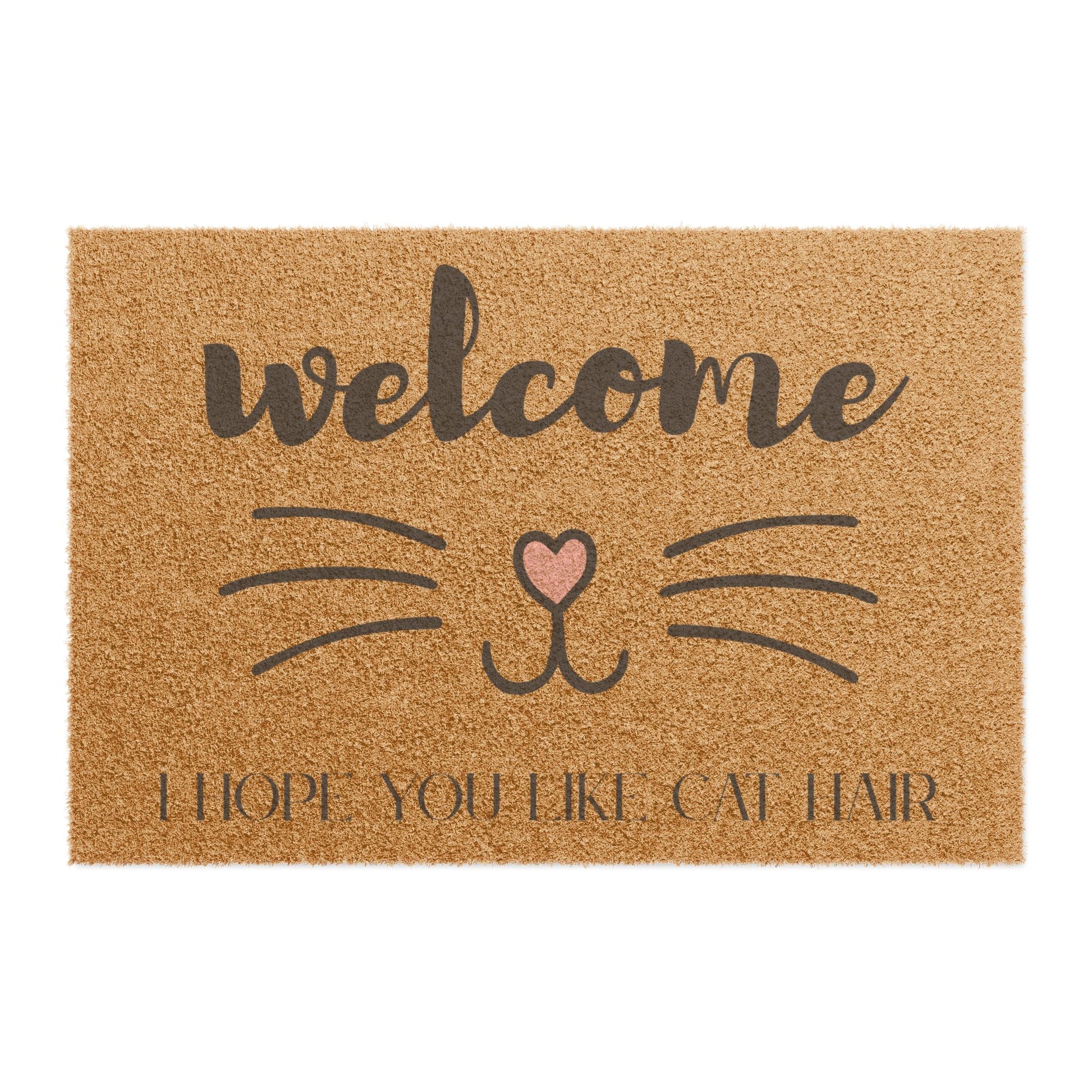 Welcome Cat Doormat – "I Hope You Like Cat Hair" Funny Pet Lover Door Mat