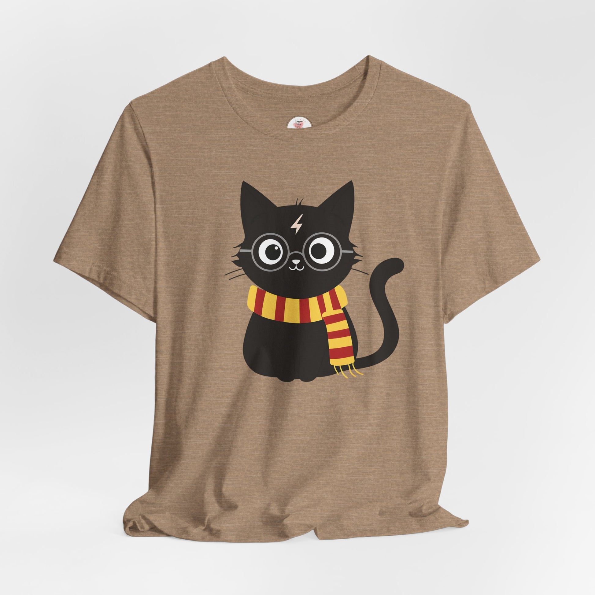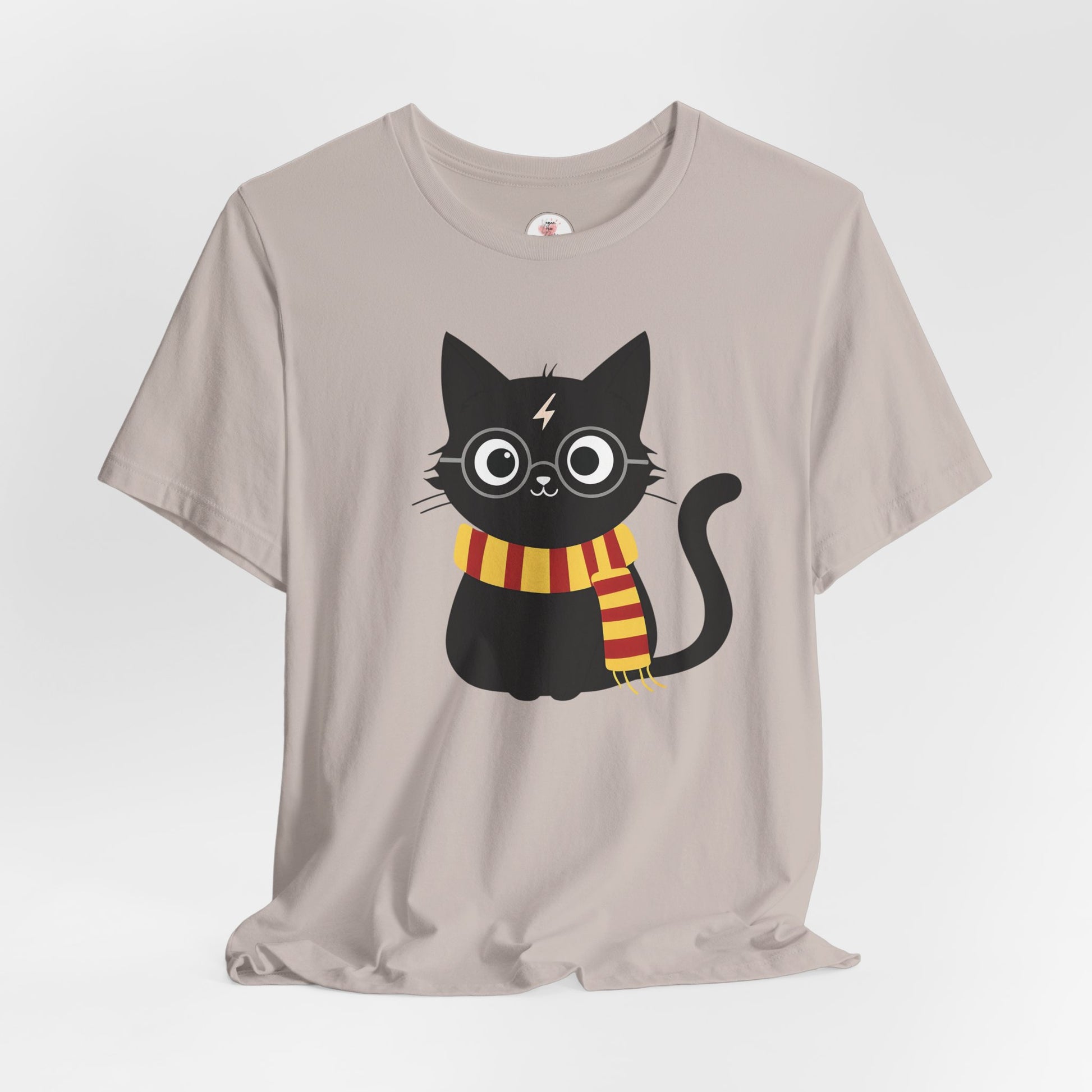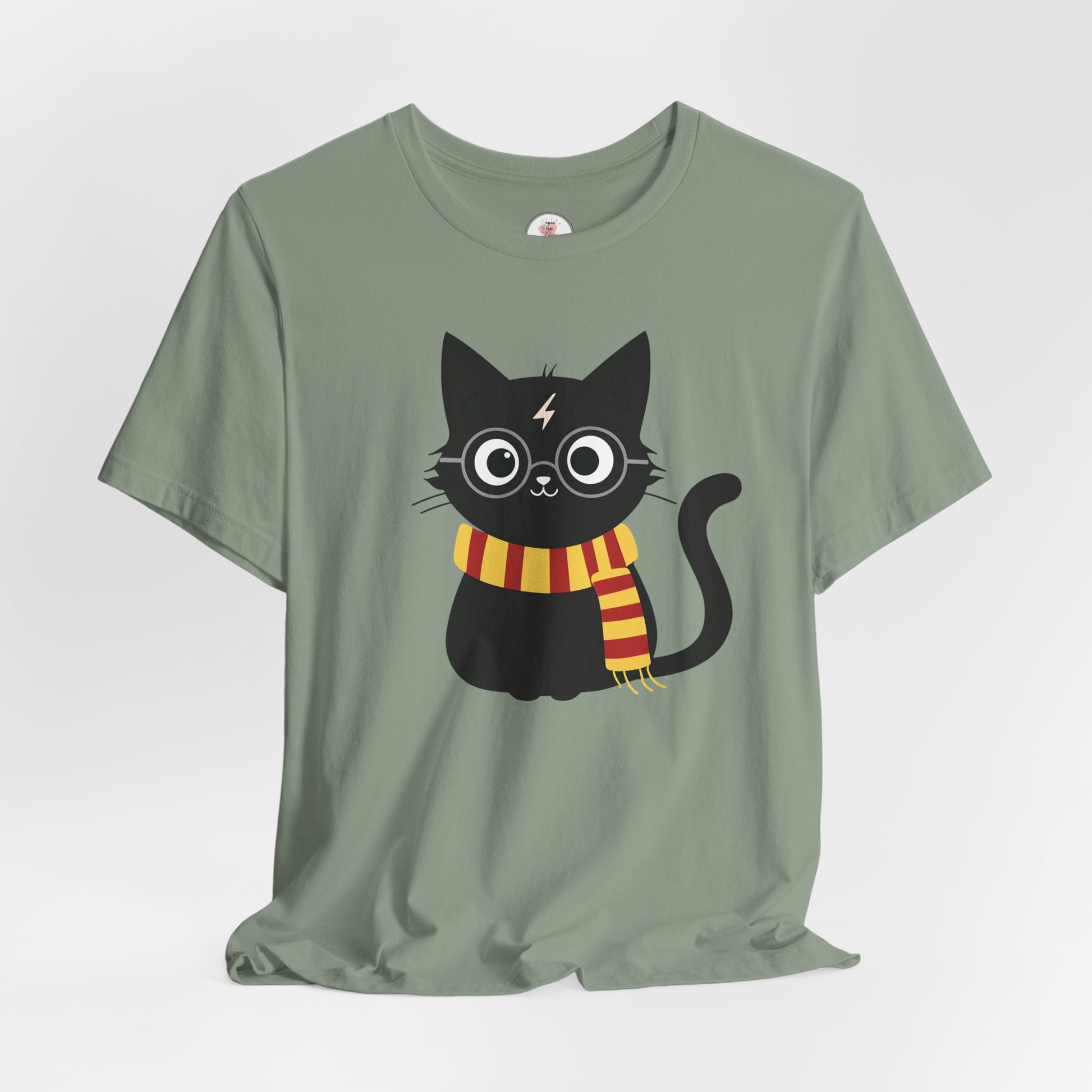 Wizard Cat Graphic Tee – Cute Black Cat with Scarf & Lightning Bolt